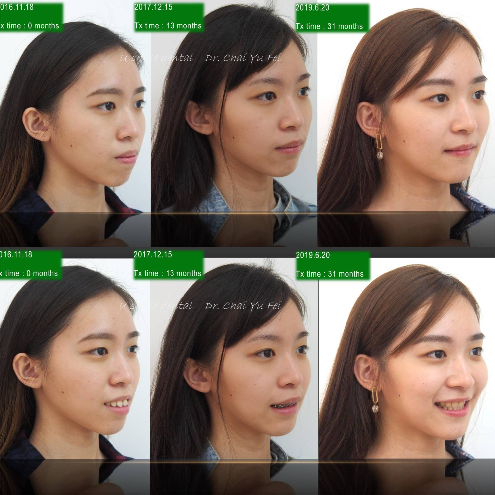 由於她的配合度 ,以及年紀的關係,移動的速度算還不錯 ,但我還是花了兩年多的時間來調細節~ 矯正完成後,她從大學畢業準備回國,恭喜!