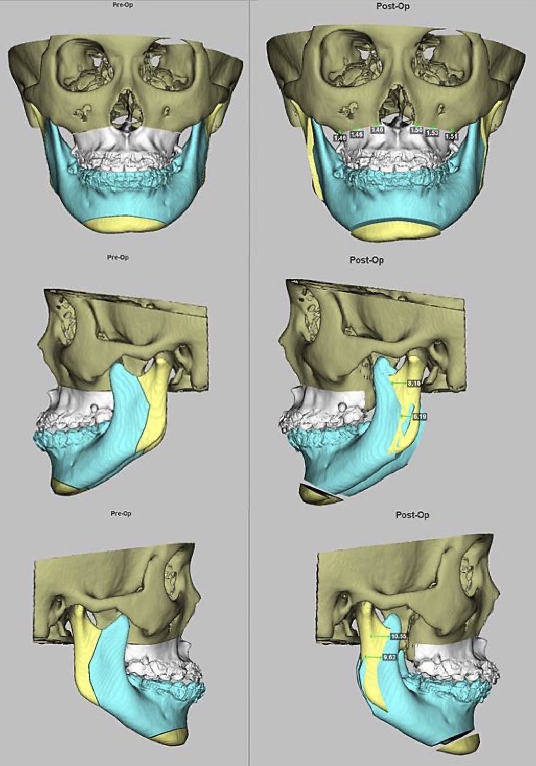 這個年代的正顎手術已經跟早年都不一樣,術前的3D定位技術已經非常精準,以下就是術前術後的模擬圖。