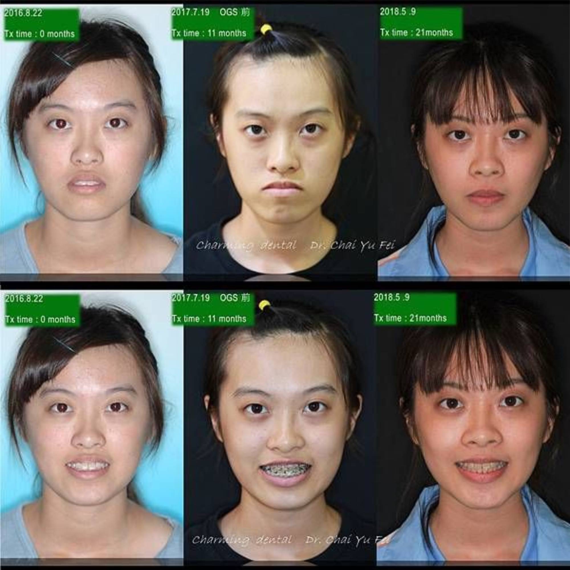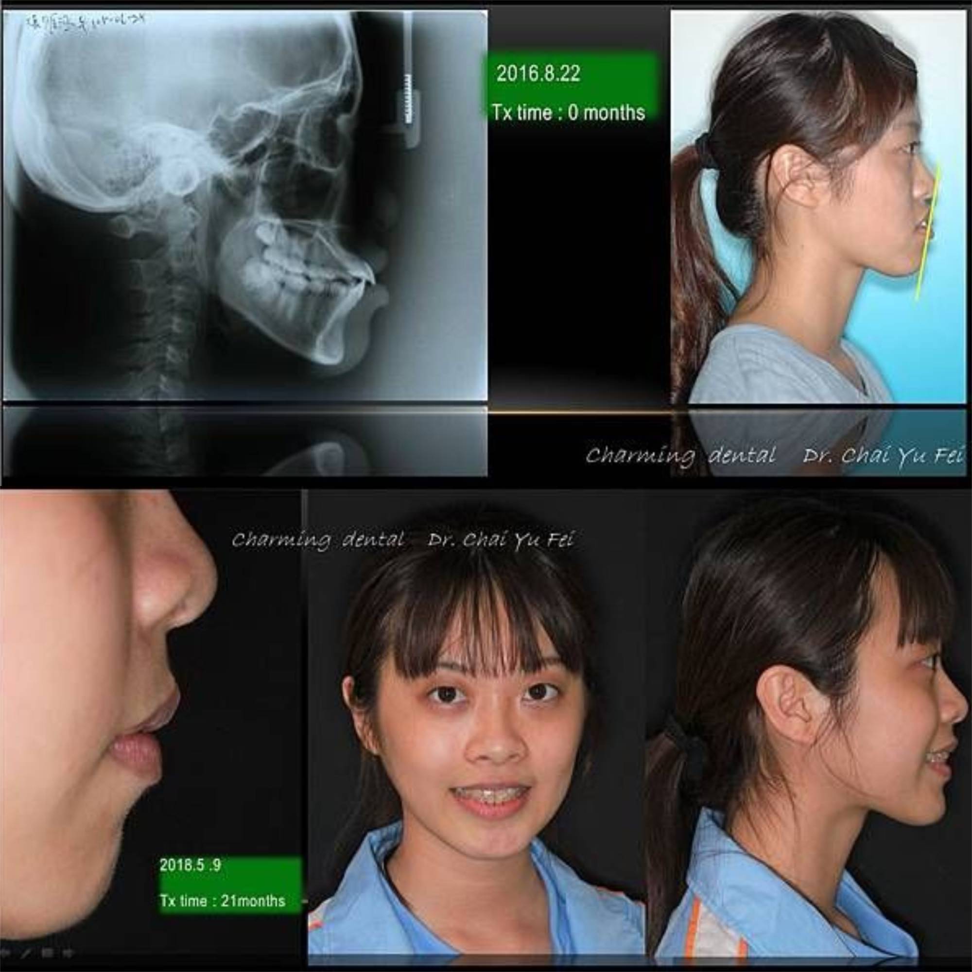 恐怕也達不到厚道改善的程度,經過充分溝通,建議她使用矯正合併正顎手術的方式去完成治療。