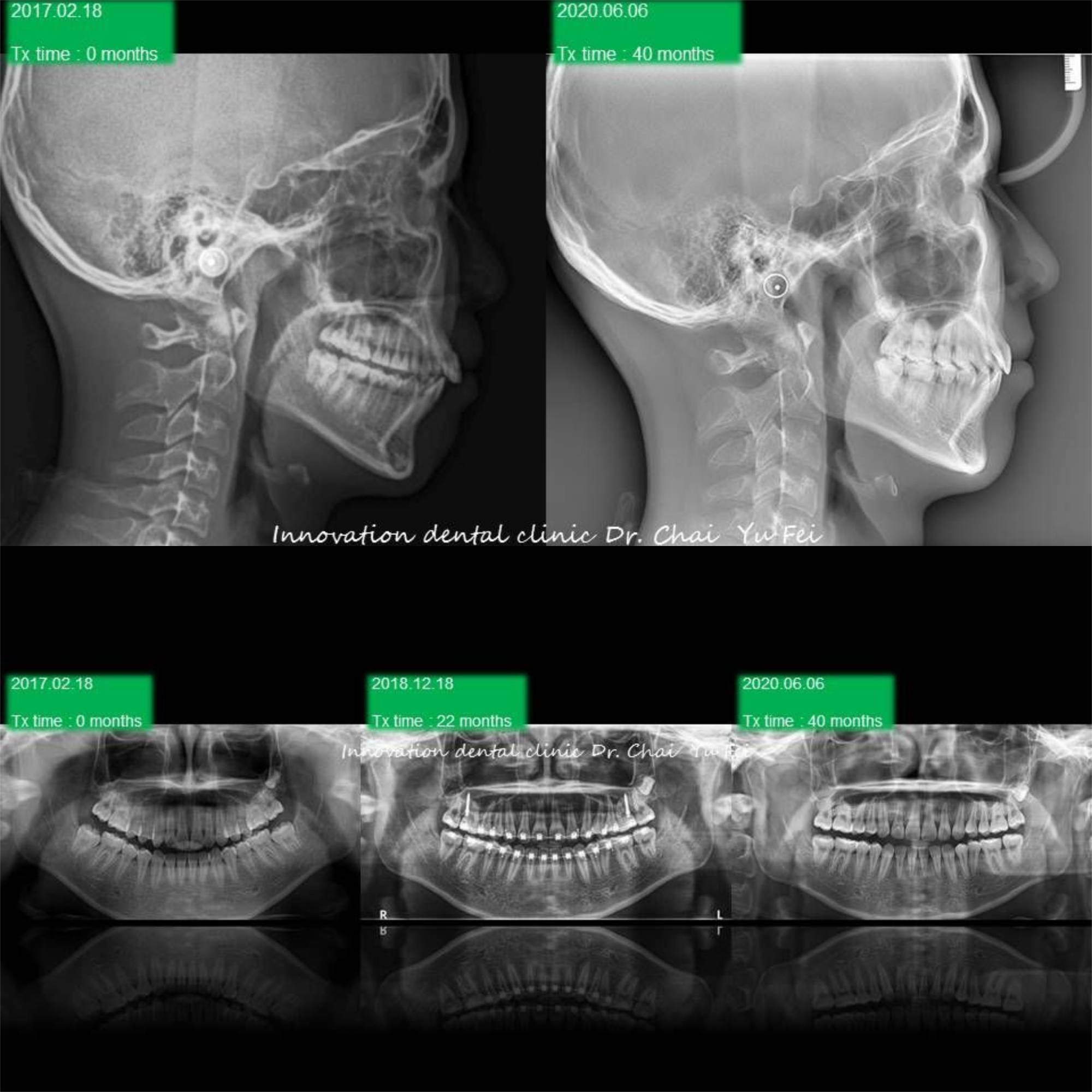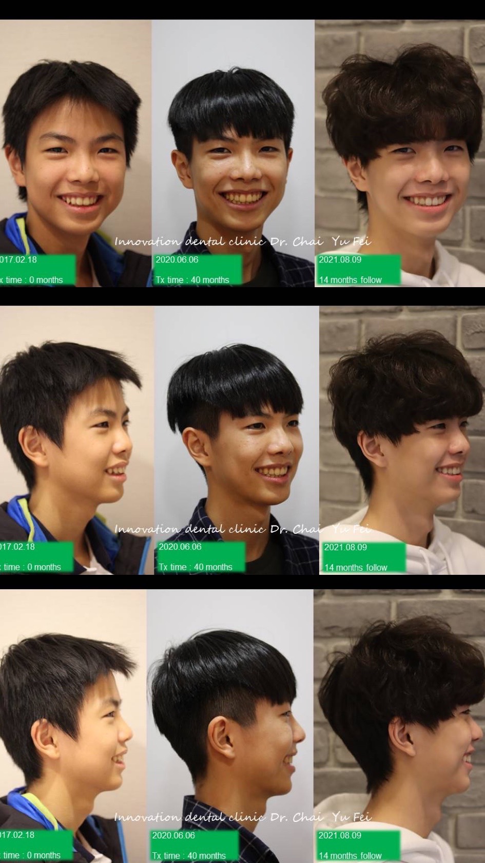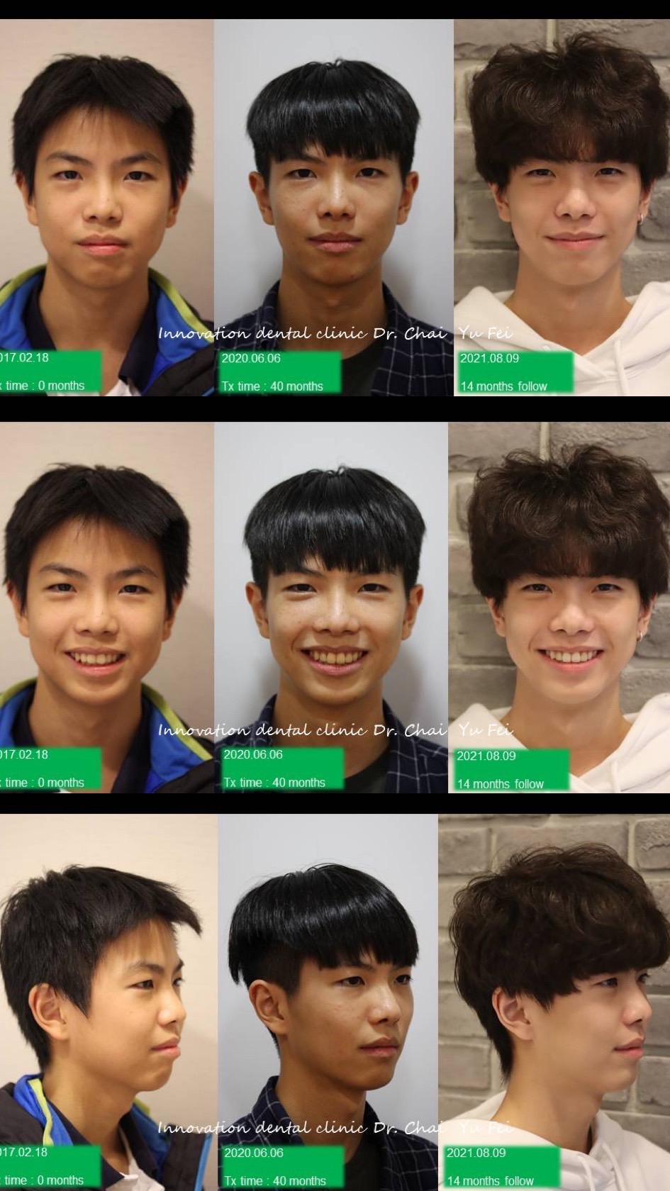 我們採用上顎到後期用骨釘加一層保險去控制,下顎讓孩子自然生長的方式,現在這位高材生都已經升大學了