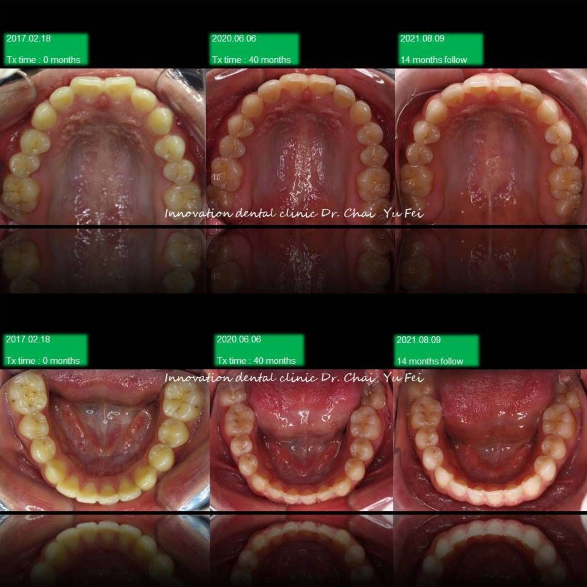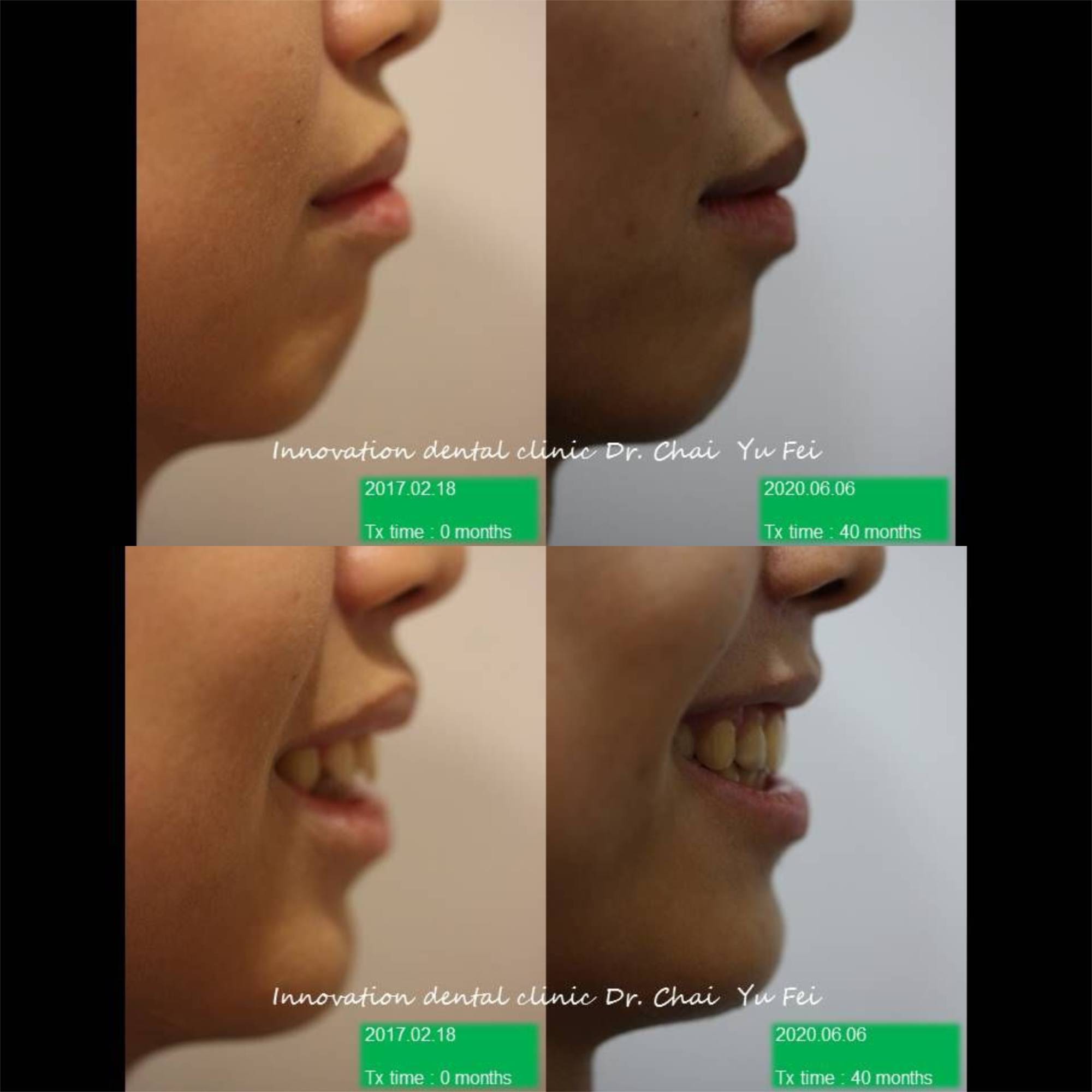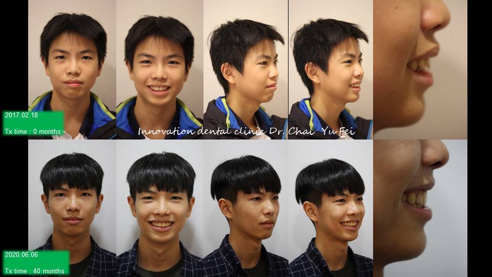 我們採用上顎到後期用骨釘加一層保險去控制,下顎讓孩子自然生長的方式,現在這位高材生都已經升大學了